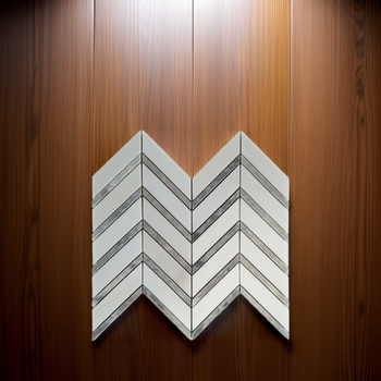 Design francese moderno in marmo bianco mosaico di alta qualità Chevron Calcite lastra di lusso cespuglio martellato grafica per uso appartamento
